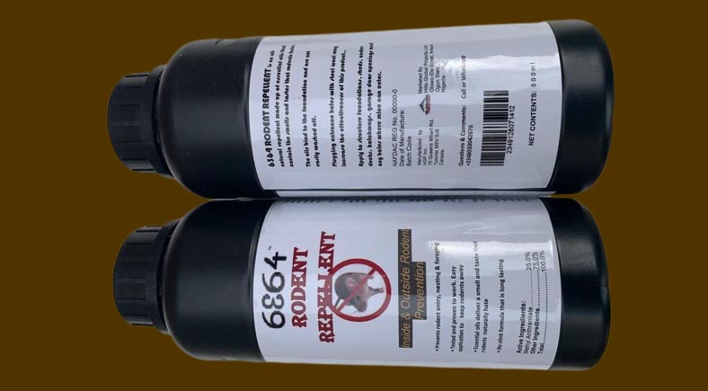 You can quickly use 6364 Rodent Repellent liquid concentrate with ease and enjoy repellency that lasts for weeks on end. We believe in using natural products that will humanely keep pests away. We know the dangers of using toxic pesticides which is why we promote the use of natural-based products for healthy agriculture, households, and ecosystems. Our non-toxic rodent repellent eliminates the concern for dead animals scattered inside walls and attics. Birds and other mammals eat poisoned rodents and sadly get poisoned themselves.Pack sizes are 500ml and 1,000ml.